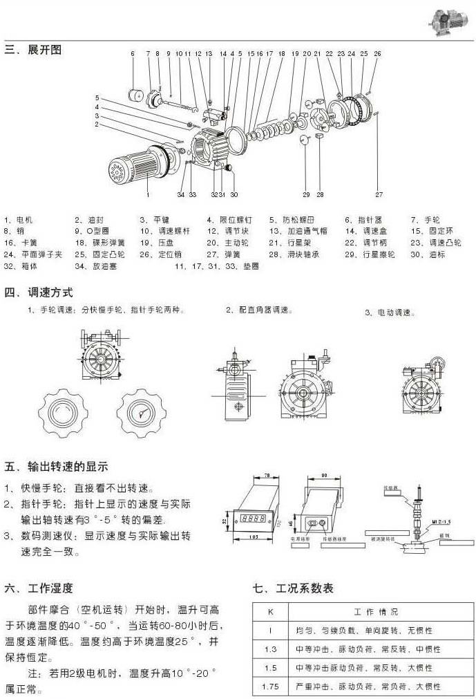 結構展開圖調速方式輸出轉速的顯示工作濕度工況系數表